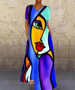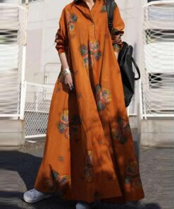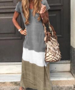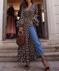V Neck Leopard Design Loose Causal Maxi Dress Tops