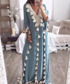 V Neck Tassels Bohemian Half Sleeve Maxi Dresses