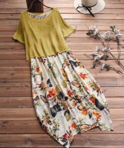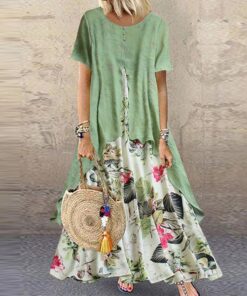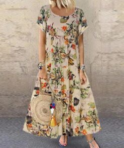 Vintage Floral Printed Short Sleeve Overhead Maxi Dress