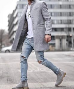 Men’s Long Sleeve Loose Overcoat Jacket Long Trench Coat