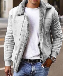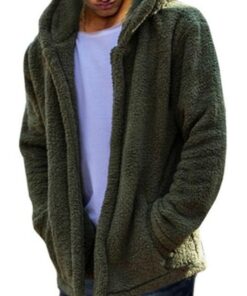 Mens Winter Casual Loose Fleece Solid Color Long Sleeve Warm Coat