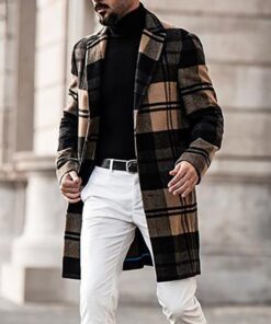 Mens Lapel Plaid Long Sleeve Fashion Coat