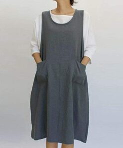Vintage Apron Overall Pinafore Midi Dress With Pockets