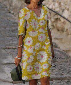 Women Casual Daily Printed Half Sleeve Shift Midi Dress*