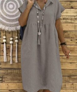 Women Plus Size Linen Cotton Short Sleeve Midi Dress