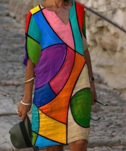 Women Casual Loose Round Neckline Shift Dress