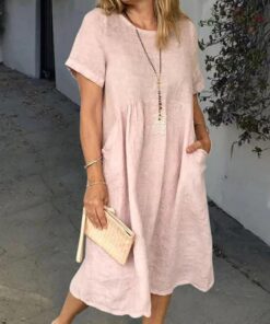 Women Summer Pockets Solid Linen Dresses*