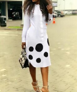 Women Long Sleeve Daily Work Dot Print Shirt Dress