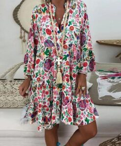 Women’s Plus Size Print Mini Dress Casual Loose Dress Beach Party Dress