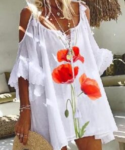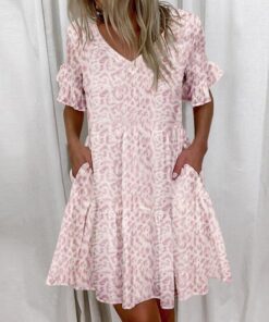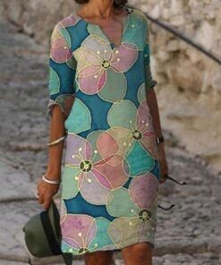 Women’s Casual Print V-Neckline Half Sleeve Shift Dress*