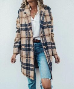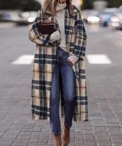 Vinatge Classic Lapel Plaid Loose Woolen Long Coat