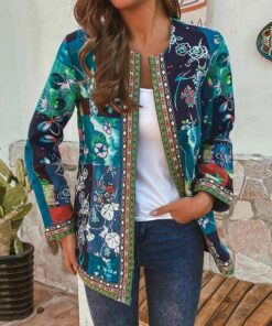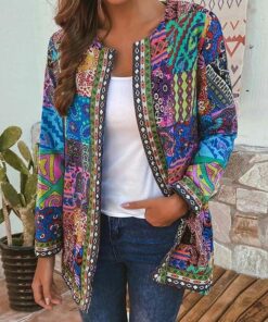 Vintage Ethnic Style Floral Print Patchwork Plus Size Jackets