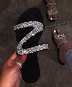 ⭐ Women Shiny Slippers Casual Embellished Toe Post Shoes
