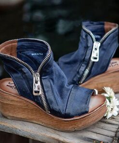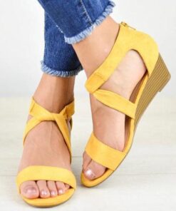 Wedge Heel Cloth Criss Cross Open Toe Zipper Wedges Sandals