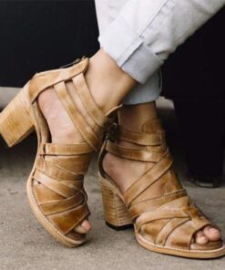 Vintage Buckle Strap Heel Sandals Chunky Heel Sandals