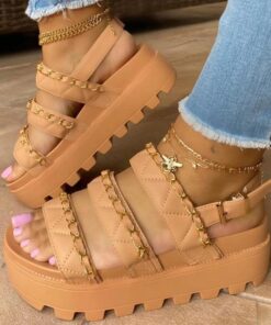 Women Comfotable Fashion Pu Chain Adjusting Buckle Thick Bottom Sandal