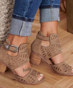 WOMEN CHUNKY HEEL ADJUSTABLE BUCKLE SANDALS CASUAL SHOES