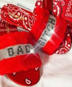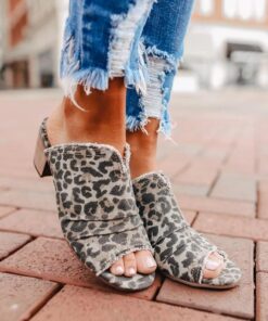 Denim Cloth Chunky Heel Sandals Mules Slippers