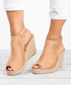 Espadrille Wedge Heel Sandals Adjustable Buckle Peep Toe Sandals