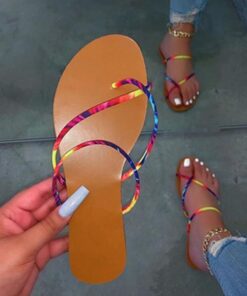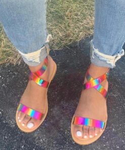 Women Daily Sexy Rainbow Buckle Strap Flat Heel Sandals
