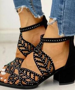 Women Elegant Hollow Out Peep Toe Heel Sandals