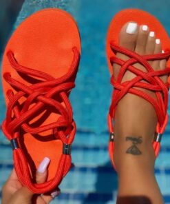 Women Fashion Holiday Slip On Flat Heel Sandals