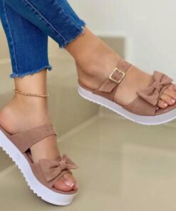 Women Fashion Comfy Pu Bowknot Thick Bottom Slippers