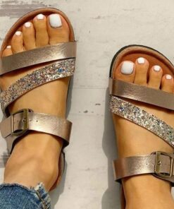 Women Fashion Paillette Open Toe Buckle Strap Sandals