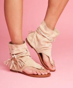 Women Fashion Web Celebrity Style Pu Rhinestone Lace-up Flat Sandals