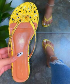 Women Fashion Pattern Thongs Slip On Flat Heel Slippers