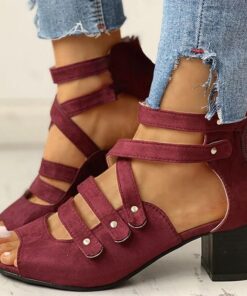 Women Large Size Hollow Out Back Zipper Chunky Sandals