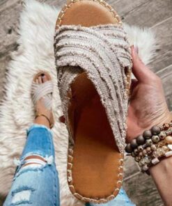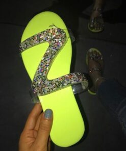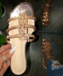Women Holiday Rhinestone Slip On Flat Heel Sandals