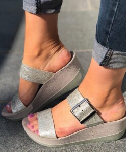 Women Large Size Casual Pearl Buckle Strap Chunky Heel Sandals