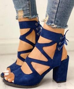 Women Lace-Up Casual Chunky Heel Pu Sandals