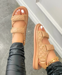 Women’s Fashion Footbed Peep Toe Slip On Slide Sandals