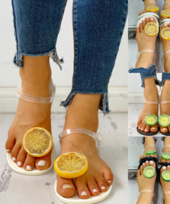 Women’s Fashion Transparent Strap Side Open Lemon Pattern Flat Beach Sandals