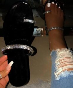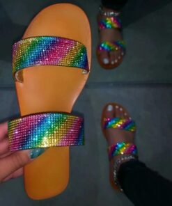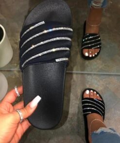 Flat With Rhinestone Flip Flop Slip-On Summer Slippers