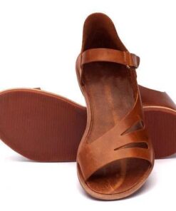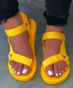 Flat With Open Toe Ankle Strap Velcro Plain Sandals