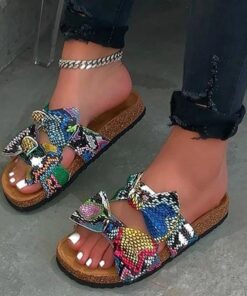 Flat With Slip-On Toe Ring Serpentine Western Casual Slippers