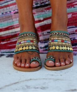 Handmade Women Sandals Tassel Flat Holiday Sandals with Beading