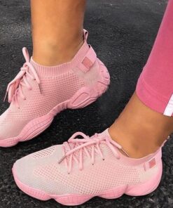 Lace-Up Round Toe Low-Cut Upper Plain Sneakers