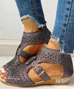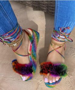 Ladies Casual Thick Buckle Party Sexy Bandage Ankle Pointed Toe Sansals