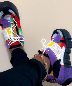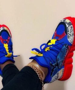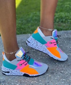 Round Toe Platform Lace-Up Mid-Cut Upper Platform Color Block Sneakers