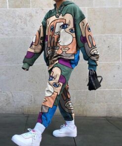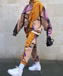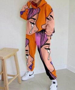 Printing Chic Hooded Sweatshirt And Sweatpant Set