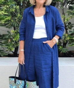 Solid Long Sleeve Lapel Double Breasted Jackets Sets