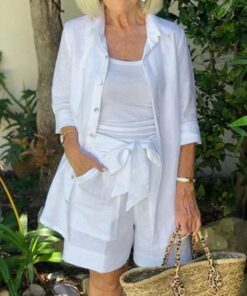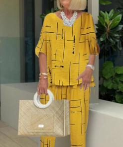 Printing Casual Two-piece 3/4 Length Pants Suits