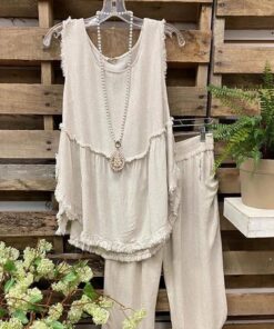 Two Piece Printing Cotton-Blend Retro Casual Suit