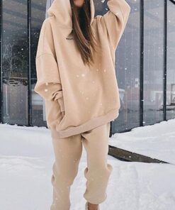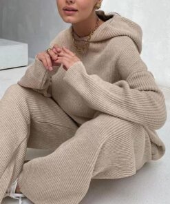 Winter Casual Loose Fit Loungewear Knit Hoodie&Pants Set