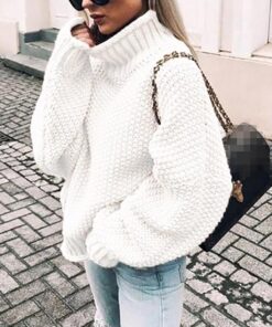 High Neck Sweater Loose Long Sleeve Fall Casual Shirts & Tops