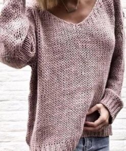 Pius Size Solid Cable-knit Chunky knit V-Neck Loose Casual Sweaters